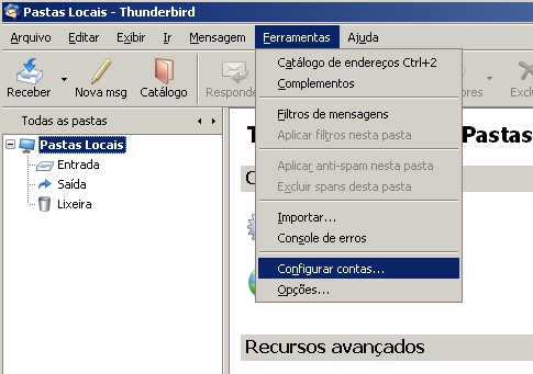 1. Clique em Ferramentas > Configurar Contas.