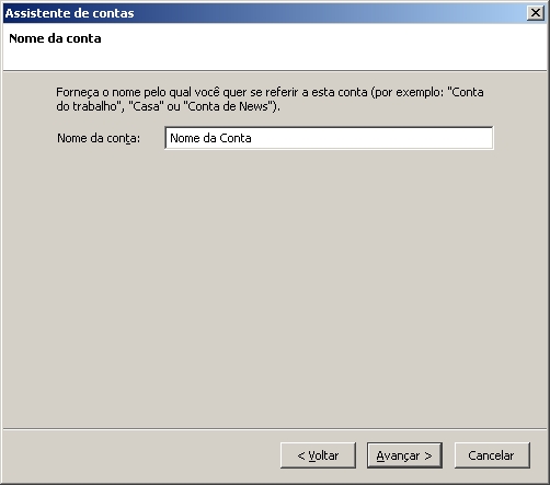 7. Preencha o nome da conta como desejar e clique em Avançar.